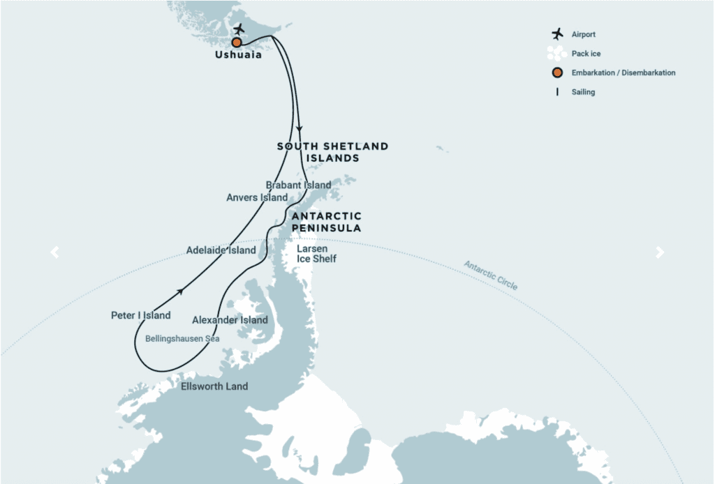 Pre-Expedition Stay: 1 night in a Ushuaia hotel on January 13, 2027 (arrive early to avoid luggage delays).